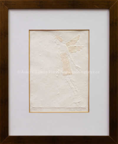 papírový reliéf, ruční papír/zlato, rozměr ve výřezu 31,5 x 22,5 cm, značeno a popsáno ve spodní části, paspartováno, zaskleno, rámováno, konzultováno a pravost potvrzena Nadačním fondem Kmentová Zoubek, (vznik 1995)