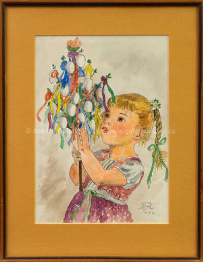akvarel/papír, rozměr ve výřezu 38,5 x 27 cm, značeno a datováno vlevo dole, paspartováno, zaskleno, rámováno, oděrky na rámu, původní předloha pro pohlednici