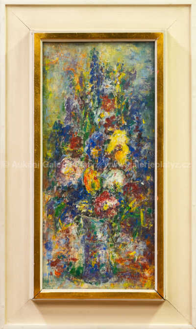 olejová tempera s voskem/plátno fixované na kartonu, rozměr 60 x 28 cm, značeno vpravo dole, zaskleno, rámováno, poškozený rám