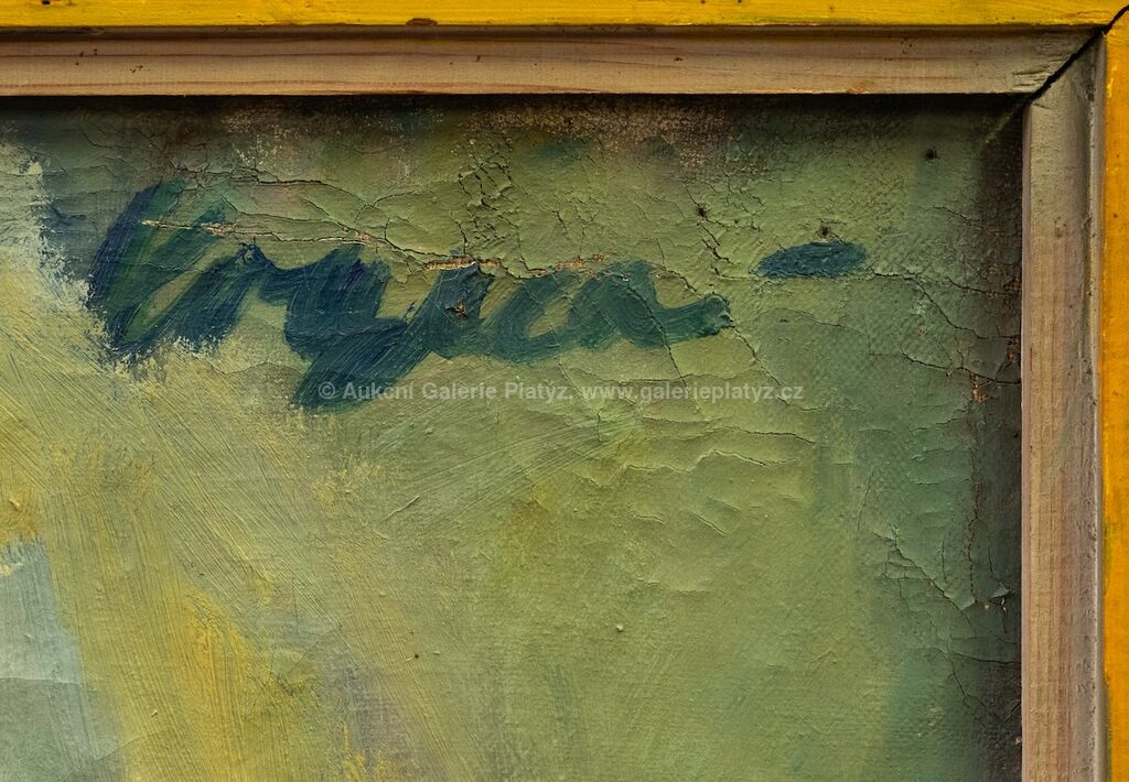 olej/plátno, rozměr 73 x 63 cm, značeno vpravo nahoře, rámováno, oděrky a rámu, přiloženo Vyjádření k dílu vypracované sběratelem Ing. Mariánem Hodošem