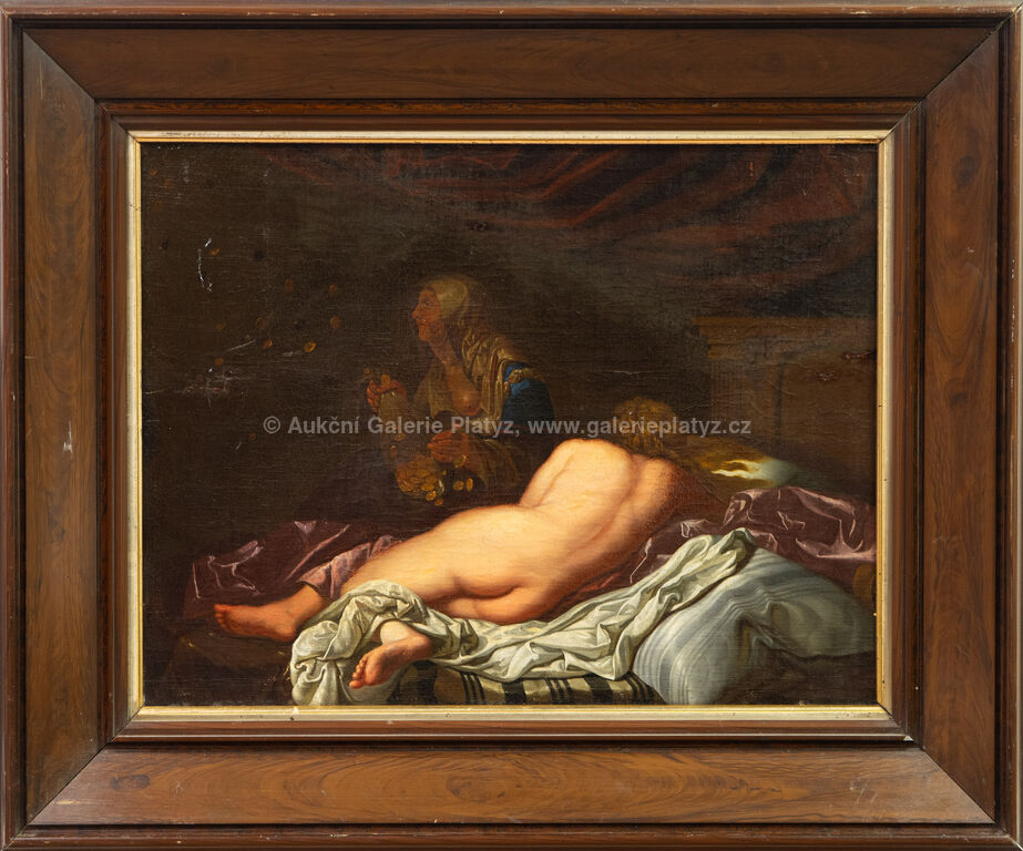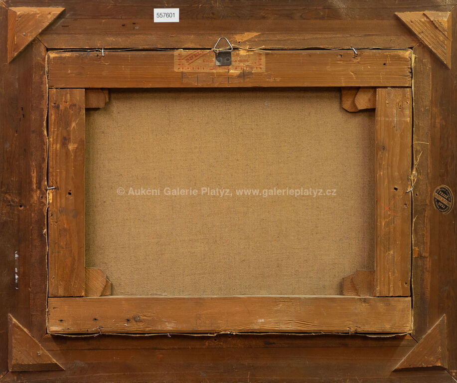 olej/plátno, rozměr 37 x 48 cm, neznačeno, rámováno, poškozený rám, v minulosti restaurováno, provedena rentoiláž, krakelovaná malba, na několika místech oděrky v malbě