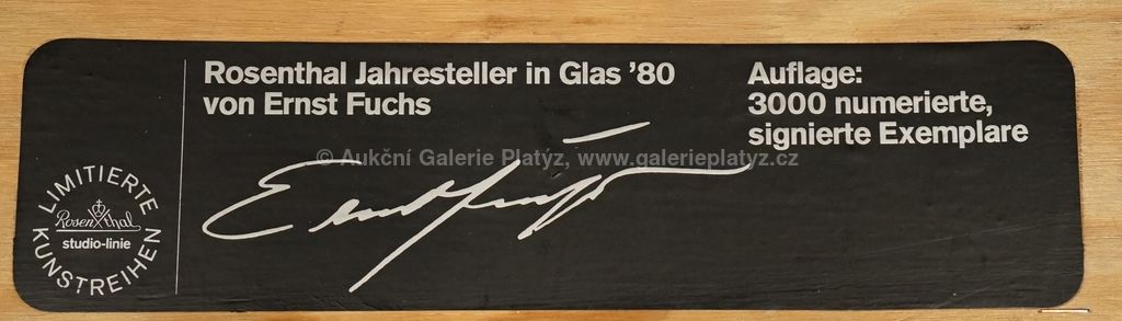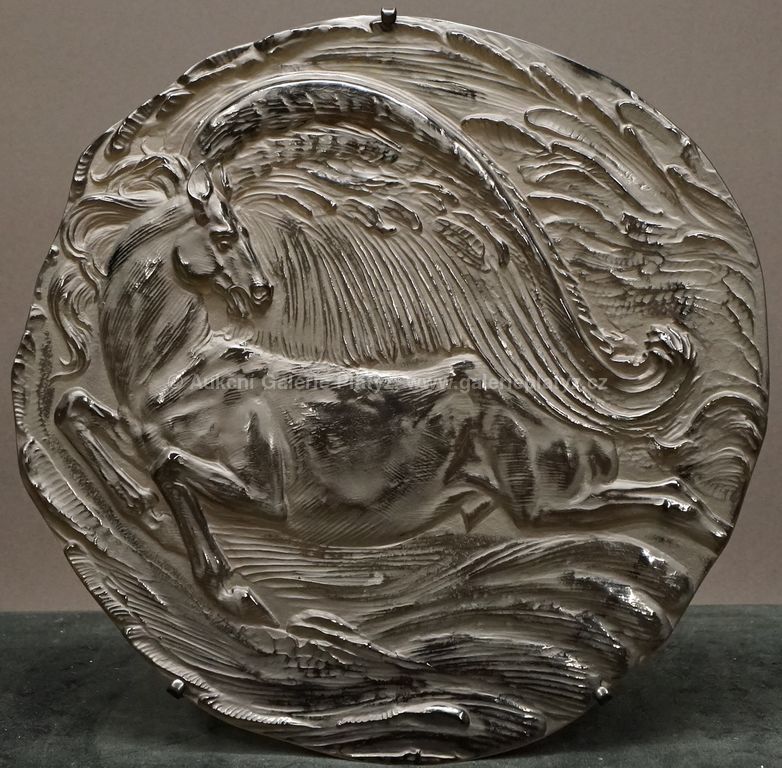 skleněná plastika zobrazující koně, průměr cca 40 cm, signováno a popsáno na hraně, číslováno, datováno, uloženo v původní kazetě, přiložen originální podstavec, limitovaná edice