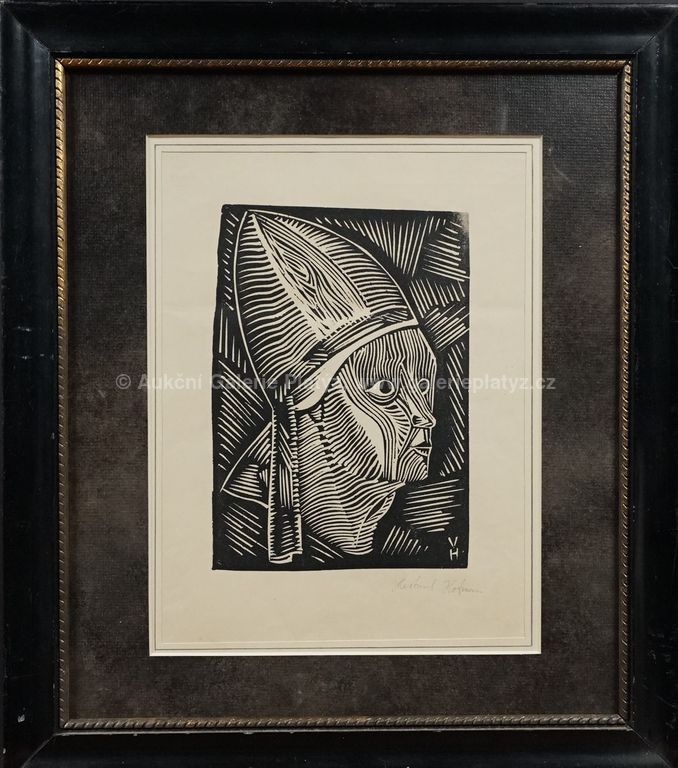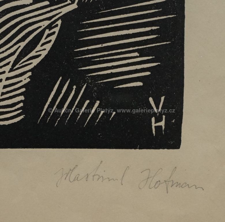 linoryt/papír, rozměr ve výřezu 31 x 23 cm, značeno vpravo dole, paspartováno, zaskleno, oděrky na rámu