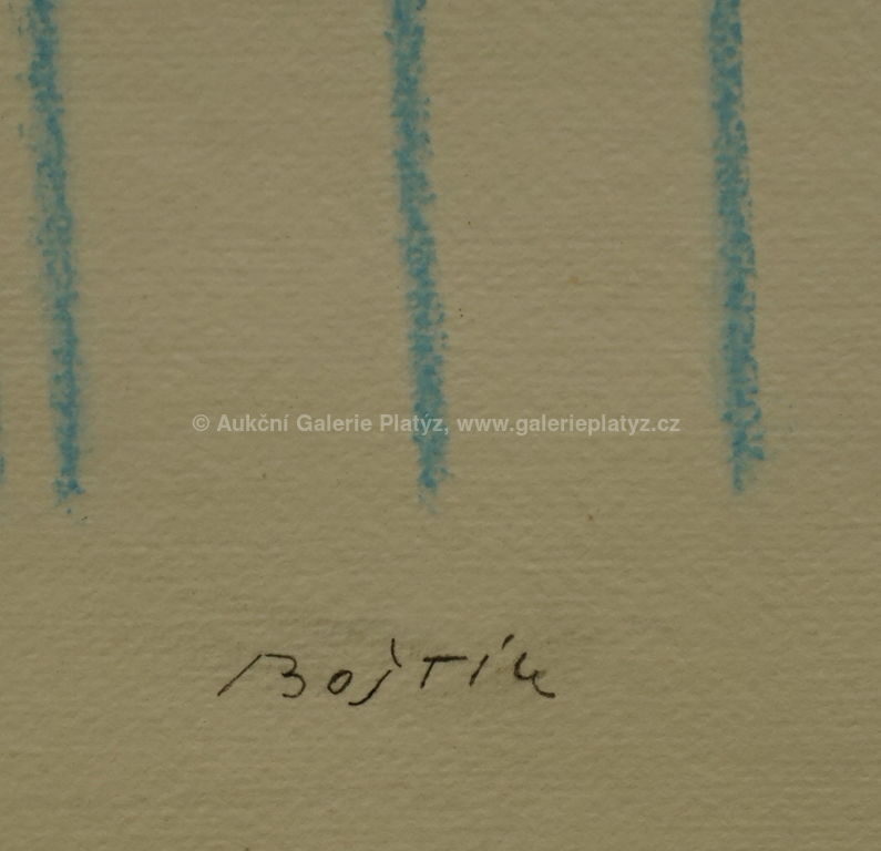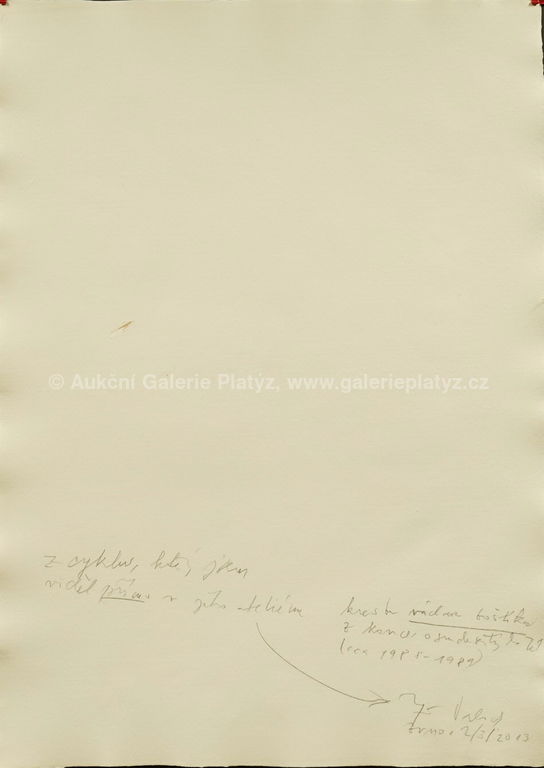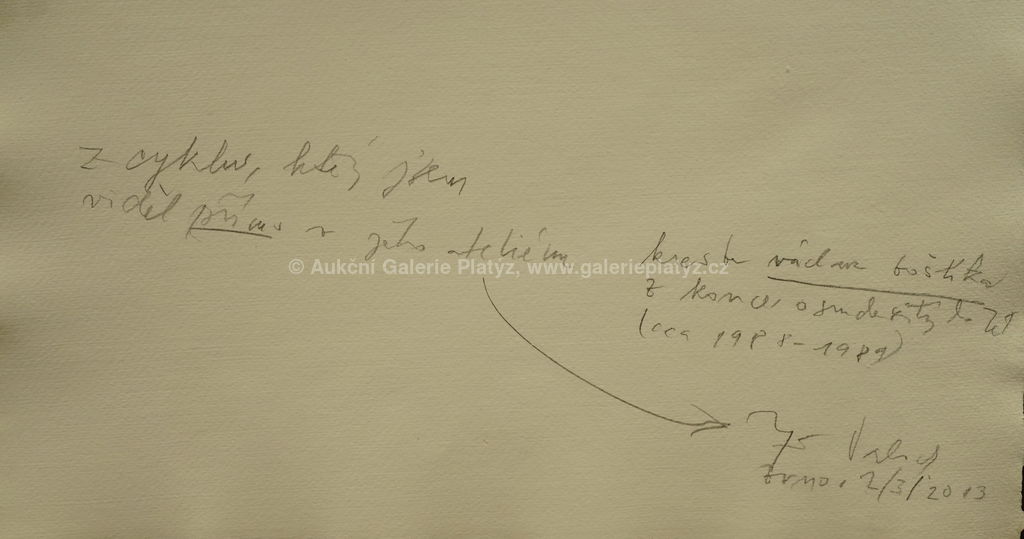 pastel/ruční papír, rozměr listu 58,5 x 42 cm, značeno uprostřed dole, na zadní straně popis Jiřího Valocha, osobního přítele a znalce autora, datace cca 1988-89