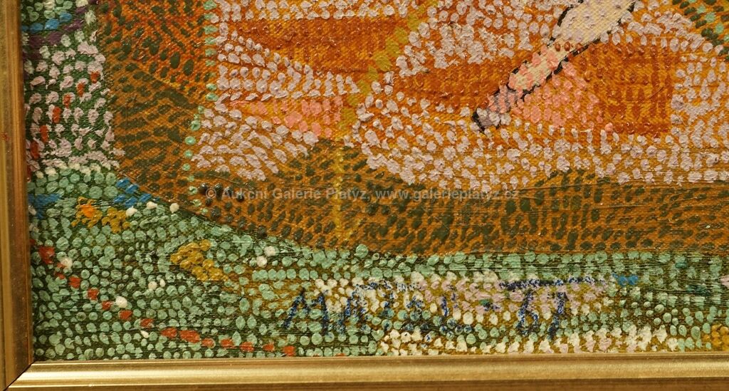 akryl/olej/karton, rozměr 35,5 x 50 cm, značeno dodatečně tužkou vlevo dole, popsáno na zadní straně, lehce poškozený rám, přiloženo odborné vyjádření k obrazu z hlediska rodinné příslušnosti od Mgr. V. Čihákové Noshiro PhD.
