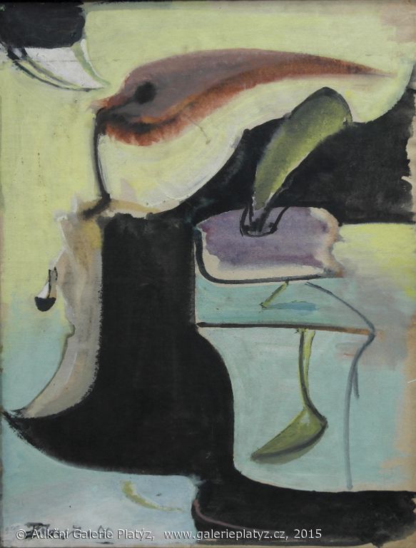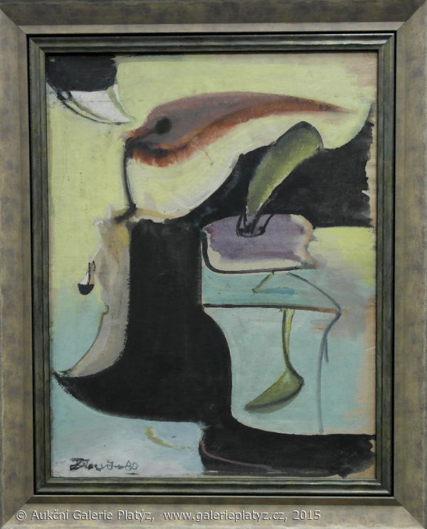 tempera/papír, rozměr 60 x 46 cm, signováno vlevo dole, datováno 80, zaskleno, rámováno, obraz i rám ve velmi dobrém stavu