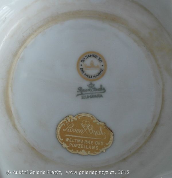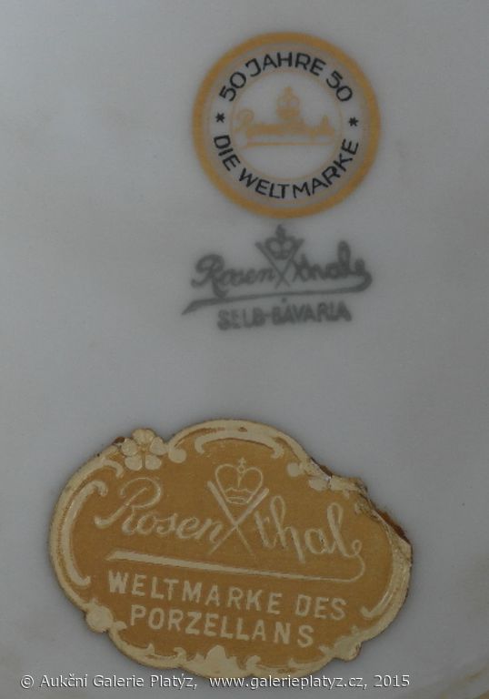 porcelán Rosenthale, glazováno, zdobené zlatou linkou, vyrobeno k 50tému výročí porcelánky, výška 51 cm, původní stav