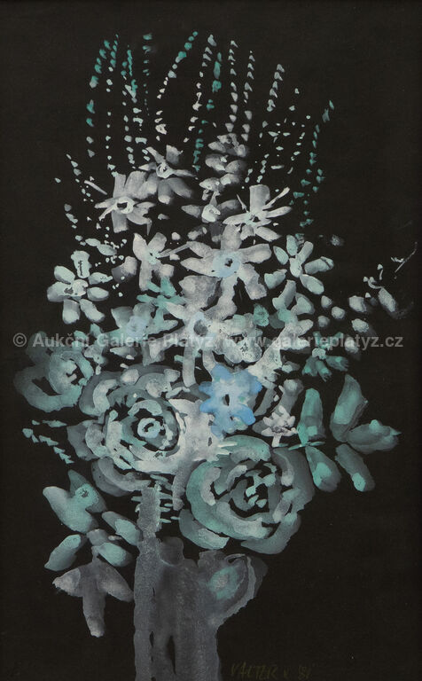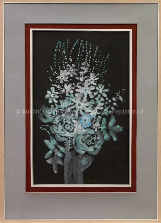 tempera/papír, rozměr ve výřezu 48 x 29,5 cm, značeno a datováno ve spodní části, paspartováno, zaskleno, rámováno