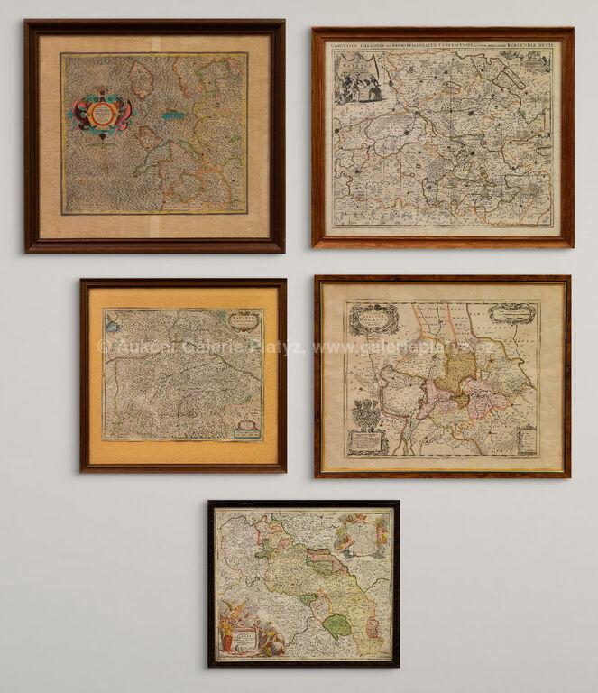 Konvolut historických map 17. a 18. stol. - kolorované mědirytiny