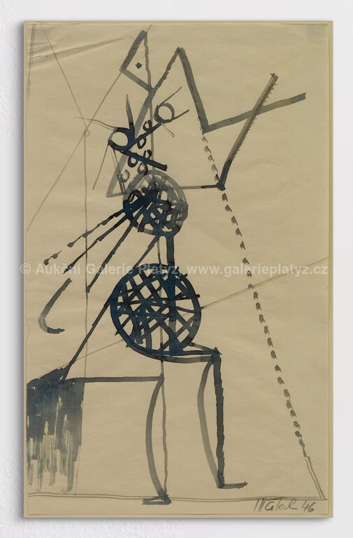 tuš/papír, rozměr listu cca 28,7 x 17,6 cm, značeno a datováno vpravo dole, paspartováno