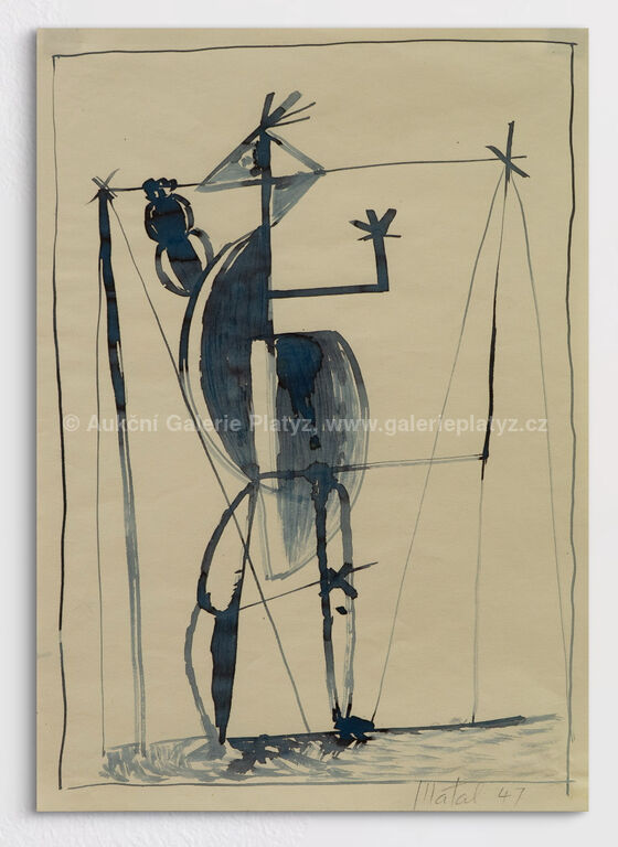tuš/papír, rozměr listu cca 29,7 x 21 cm, značeno a datováno vpravo dole, paspartováno