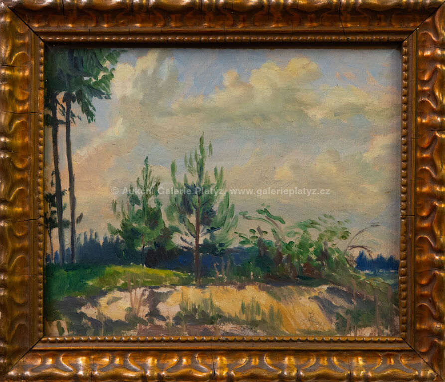 olej/karton, rozměr 25 x 30 cm, značeno a datováno vpravo dole, zaskleno, rámováno, poškozený rám