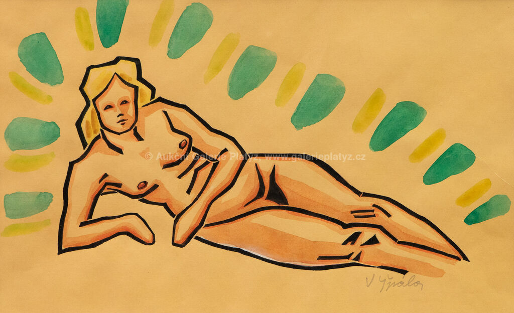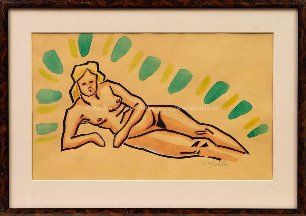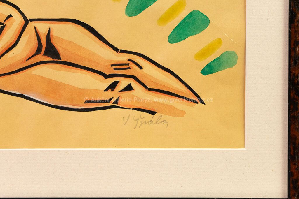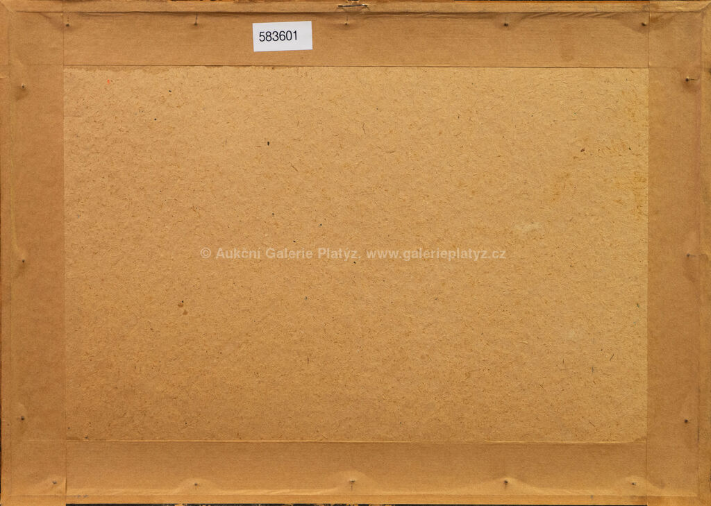 kolorovaný linoryt/papír, rozměr ve výřezu 21,5 x 36 cm, značeno vpravo dole, paspartováno, zaskleno, oděrky na rámu