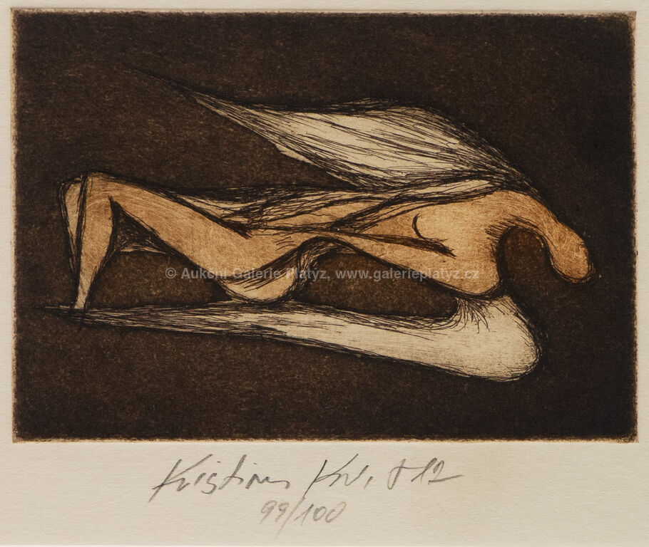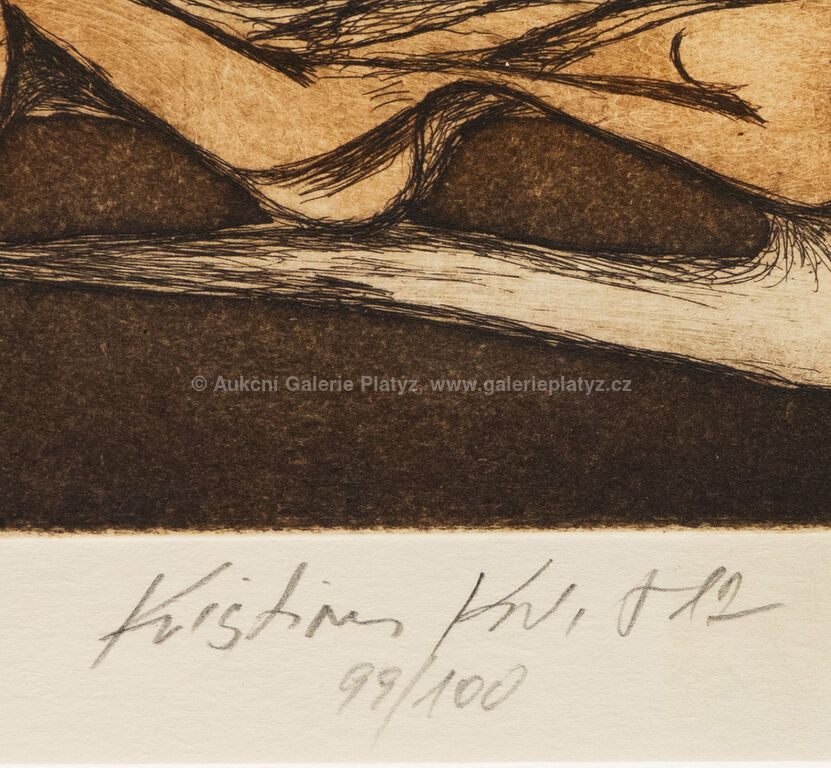 lept/papír, rozměr ve výřezu 12 x 15 cm, značeno, datováno a číslováno ve spodní části, paspartováno, zaskleno, rámováno