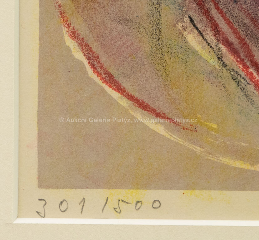 litografie/papír, rozměr ve výřezu 47,5 x 32,5 cm, značeno, datováno a číslováno ve spodní části, paspartováno, zaskleno, rámováno