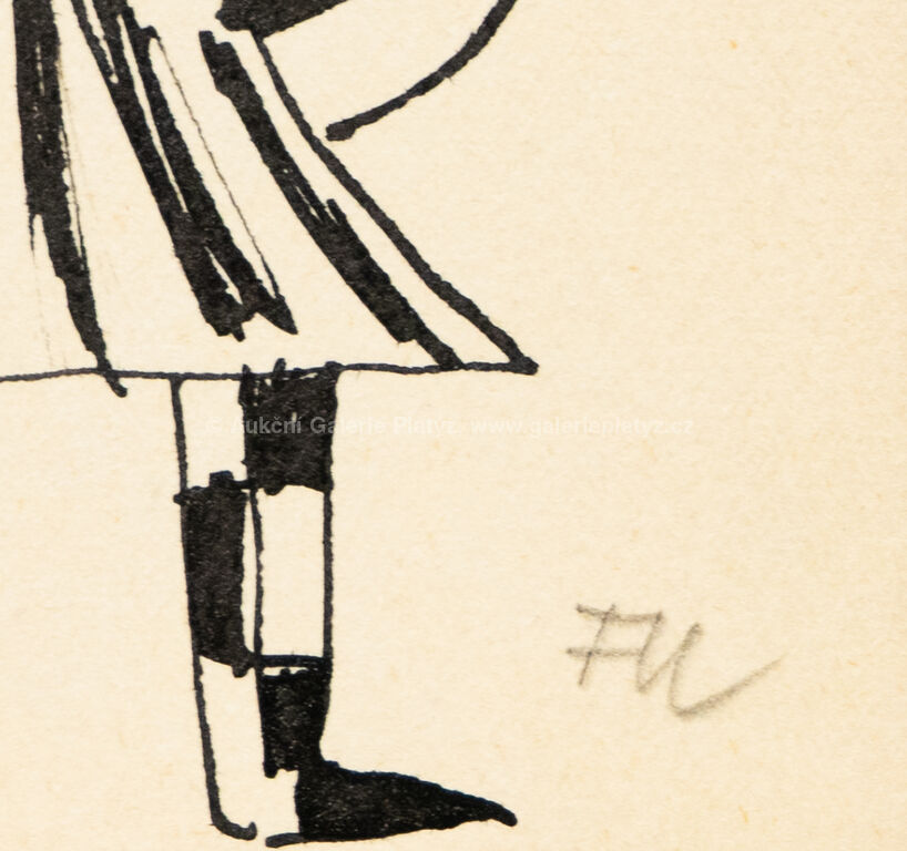 tuš/papír, rozměr listu 15,5 x 10,5 cm, značeno vpravo dole, volně loženo