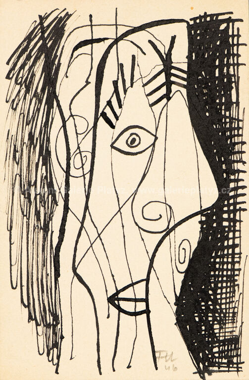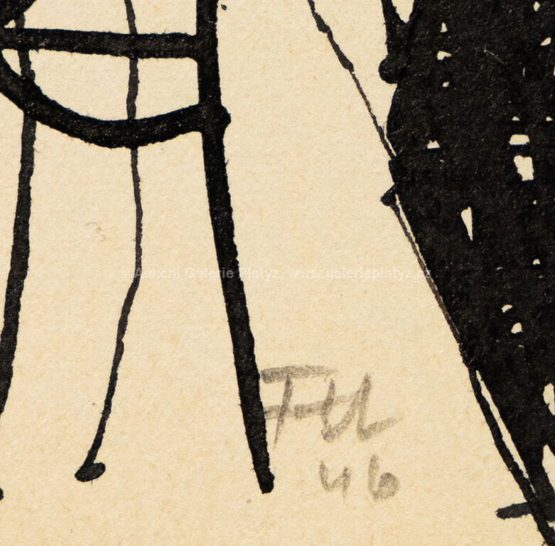 tuš/papír, rozměr listu 15,5 x 10,5 cm, značeno a datováno ve spodní části, volně loženo