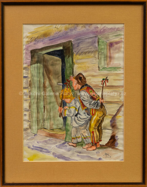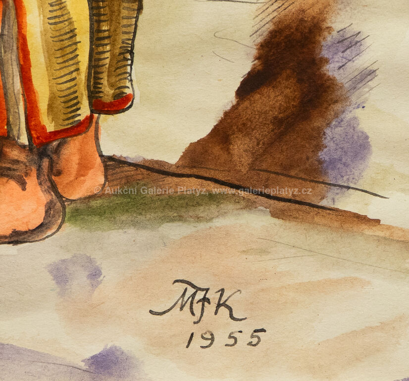 akvarel/papír, rozměr ve výřezu 36,5 x 27 cm, značeno a datováno vpravo dole, paspartováno, zaskleno, rámováno, původní předloha pro pohlednici