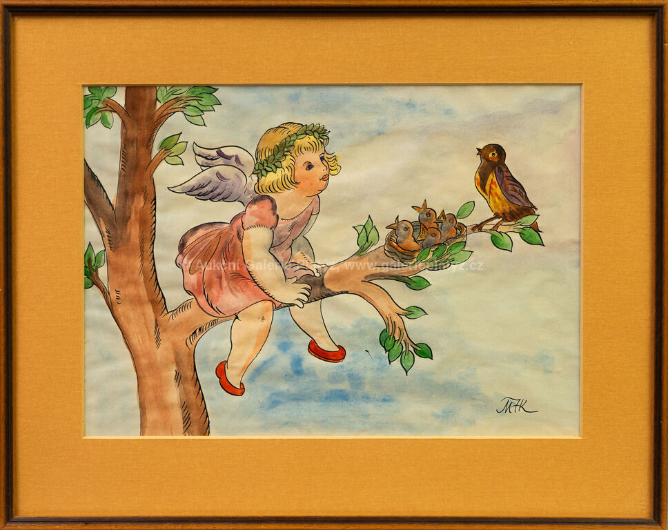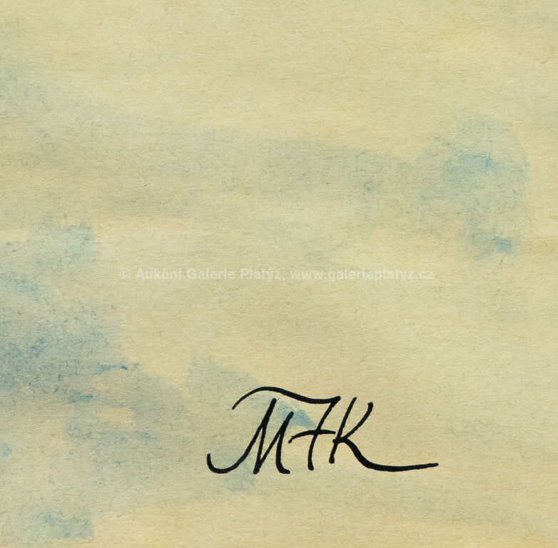 akvarel/papír, rozměr ve výřezu 28 x 40 cm, značeno vlevo dole, paspartováno, zaskleno, rámováno, oděrky na rámu, původní předloha pro pohlednici