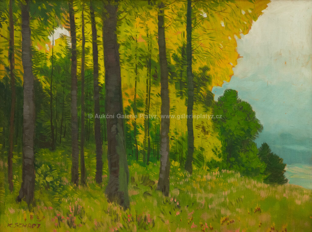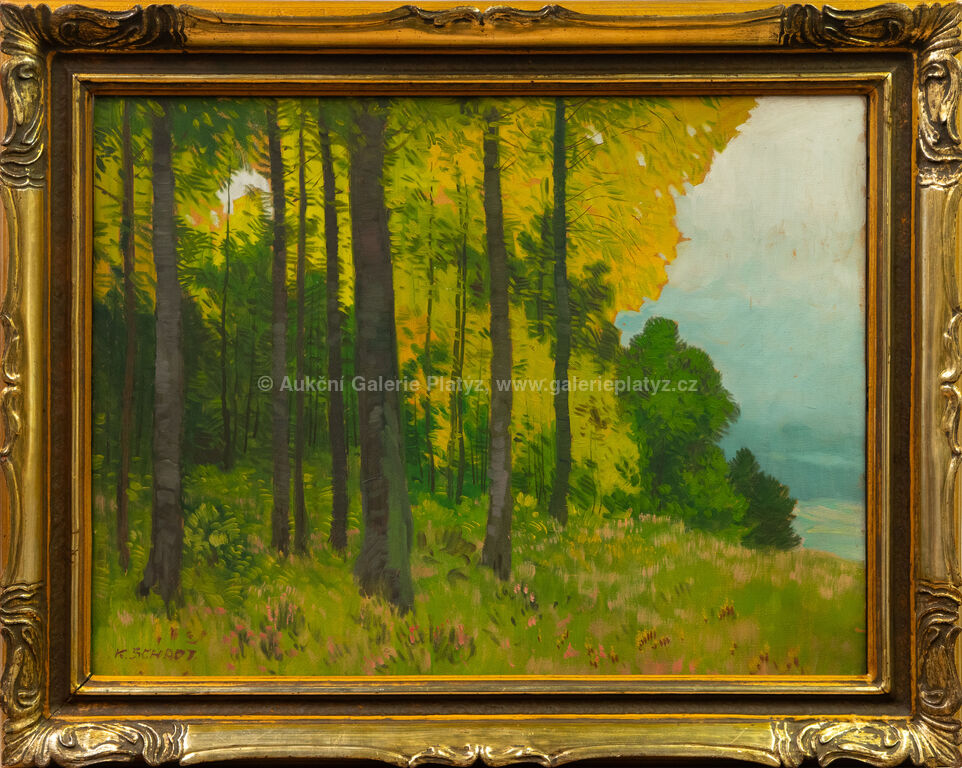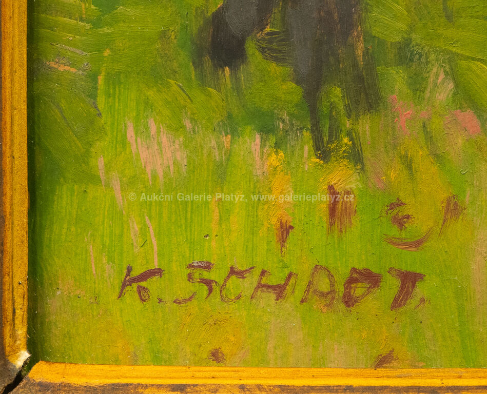 olej/karton, rozměr 50 x 65 cm, značeno vlevo dole, zaskleno, rámováno, drobné oděrky na rámu