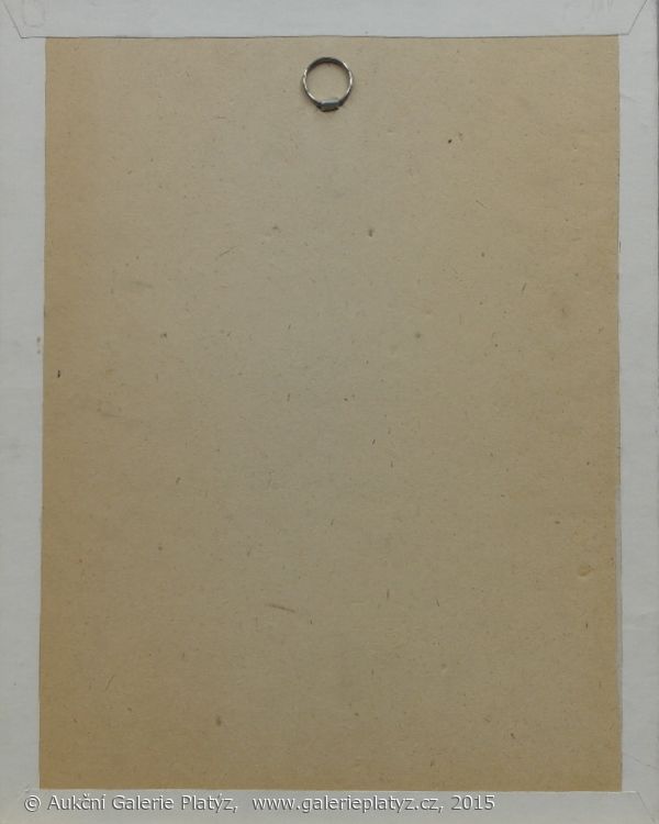 pastel/ruční papír, velikost kresby 25,5 x 19 cm, signováno uprostřed dole, papír poškozen drobnými skvrnkami, zaskleno, původní stav