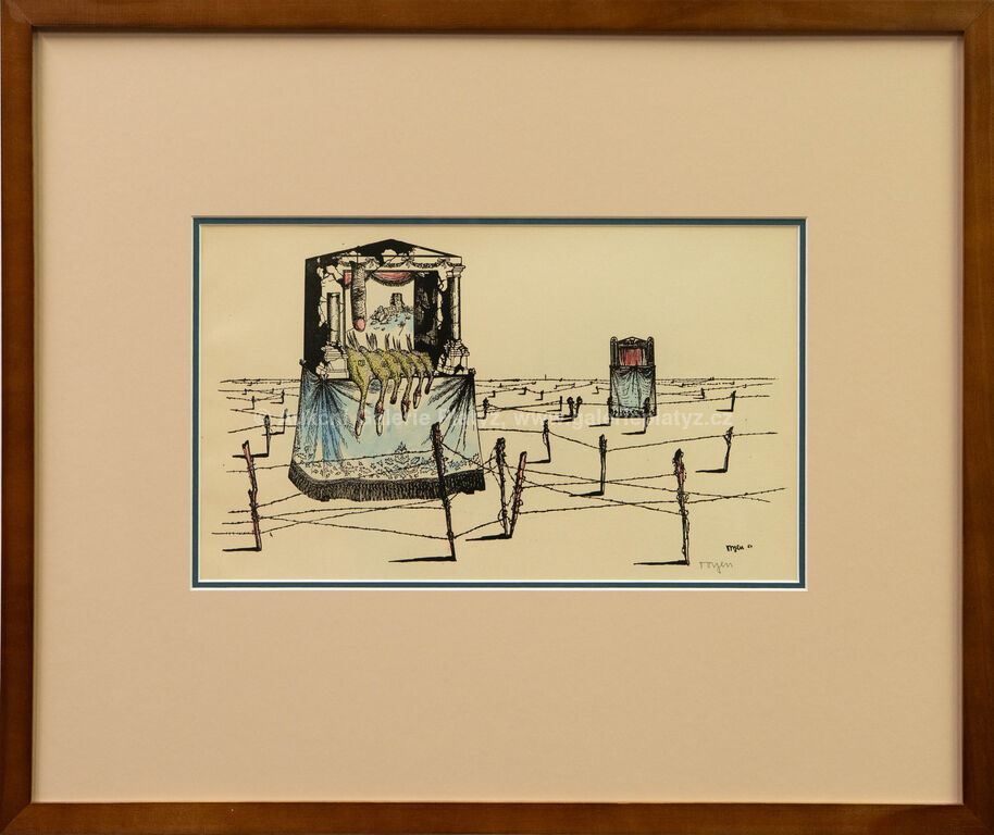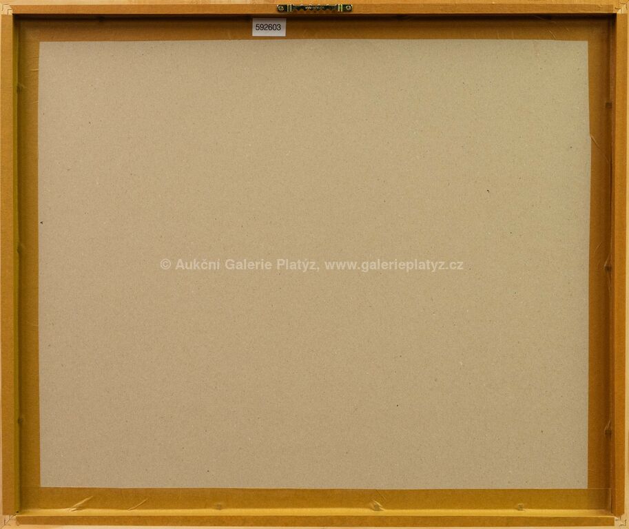 kolorovaná zinkografie/papír, rozměr ve výřezu 22,5 x 38 cm, značeno a datováno vpravo dole v tisku a vpravo dole tužkou, paspartováno, zaskleno, rámováno