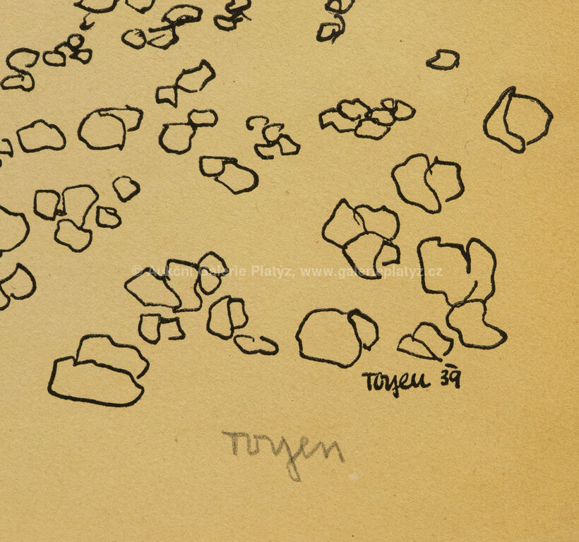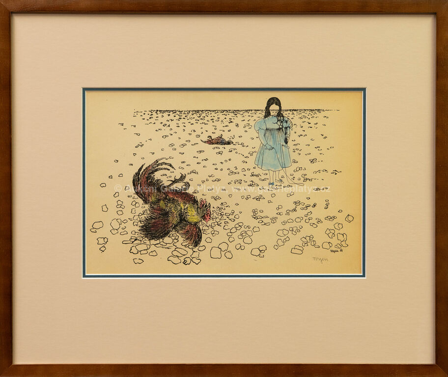 kolorovaná zinkografie/papír, rozměr ve výřezu 25,5 x 38 cm, značeno a datováno vpravo dole v tisku a vpravo dole tužkou, paspartováno, zaskleno, rámováno