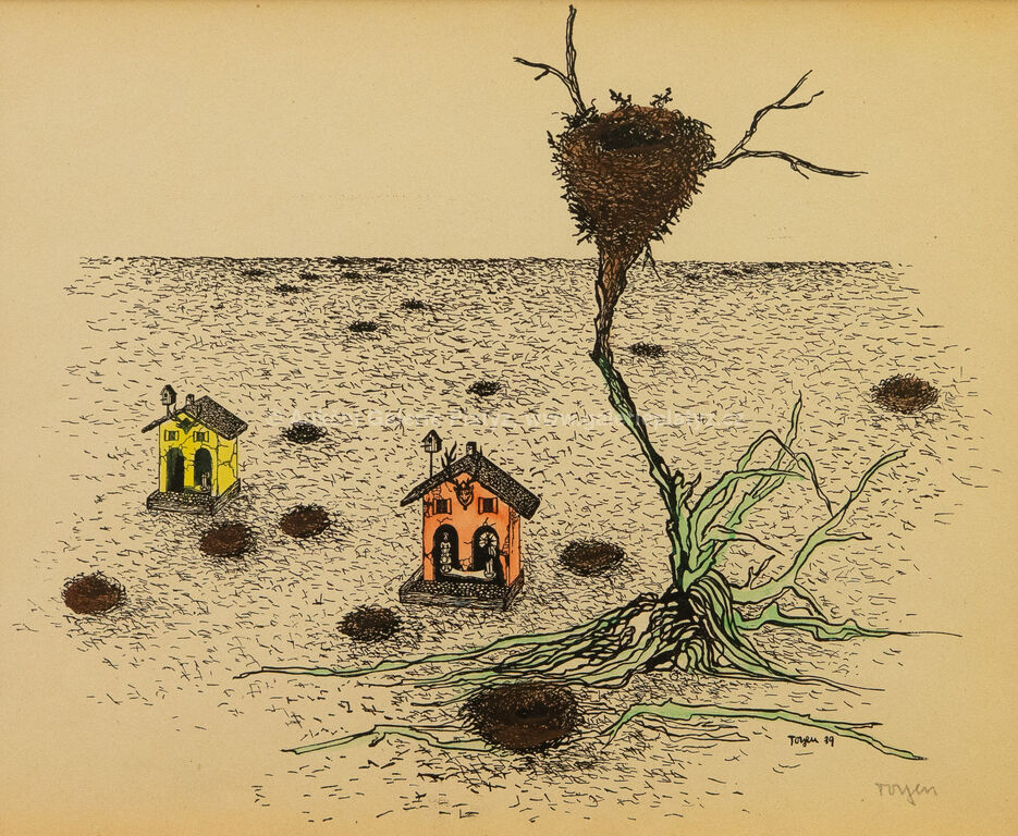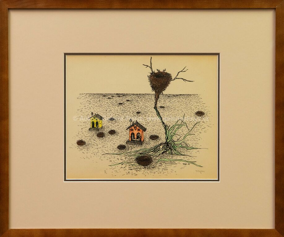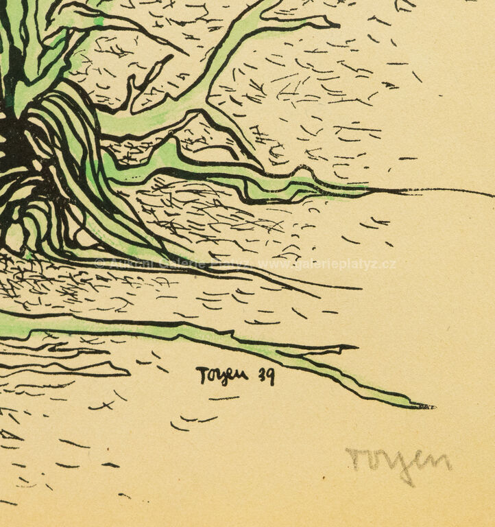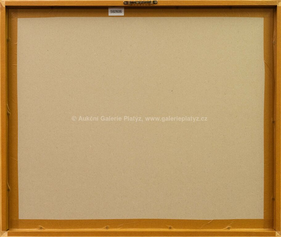 kolorovaná zinkografie/papír, rozměr ve výřezu 27,5 x 33,5 cm, značeno a datováno vpravo dole v tisku a vpravo dole tužkou, paspartováno, zaskleno, rámováno