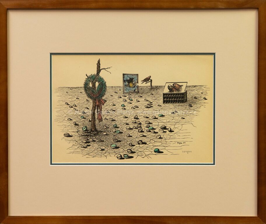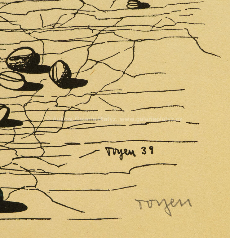 kolorovaná zinkografie/papír, rozměr ve výřezu 25,5 x 38 cm, značeno a datováno vpravo dole v tisku a vpravo dole tužkou, paspartováno, zaskleno, rámováno