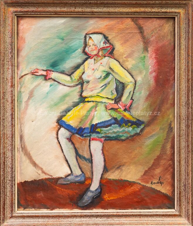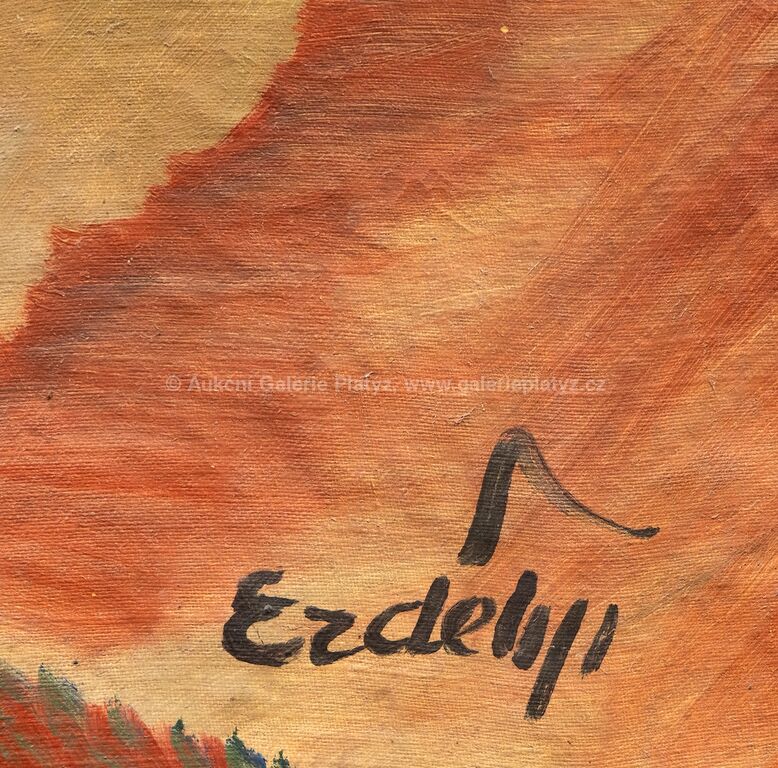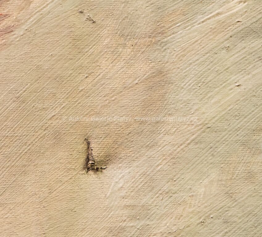 olej/plátno, rozměr 97 x 80 cm (VELKÝ FORMÁT), značeno vpravo dole, rámováno, na levé straně poškozené plátno (viz foto), přiloženo Vyjádření k dílu vypracované sběratelem Ing. Mariánem Hodošem