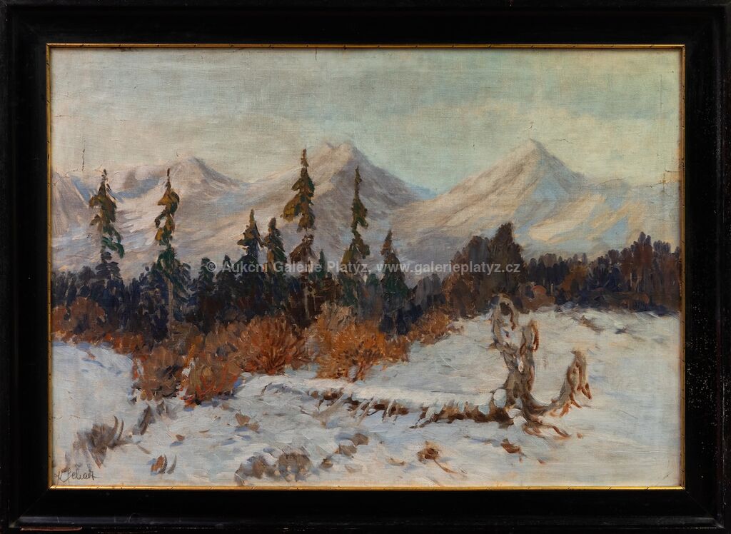 olej/plátno, rozměr 71 x 101 cm (VELKÝ FORMÁT), značeno vlevo dole, rámováno, poškozený rám, na několika místech oděrky v malbě