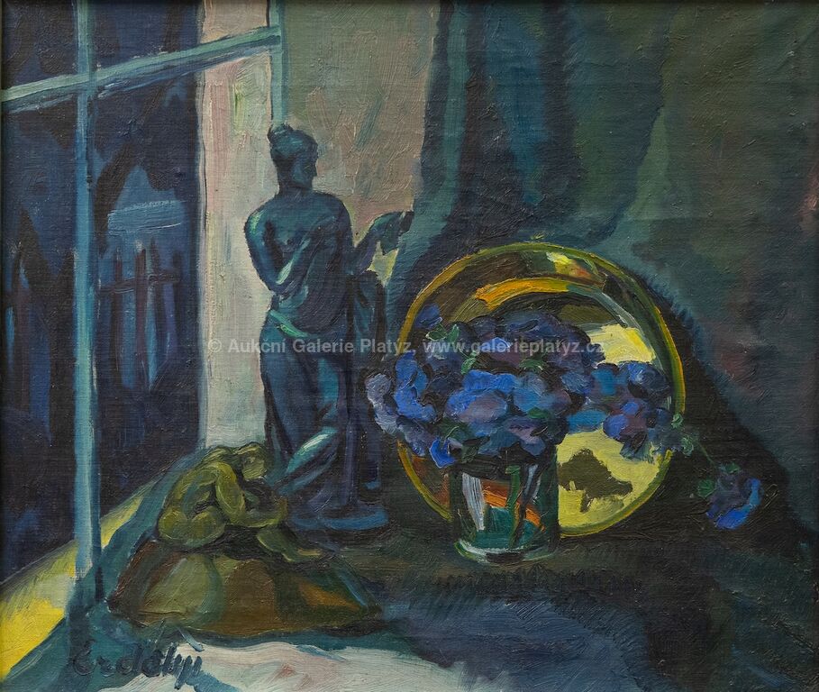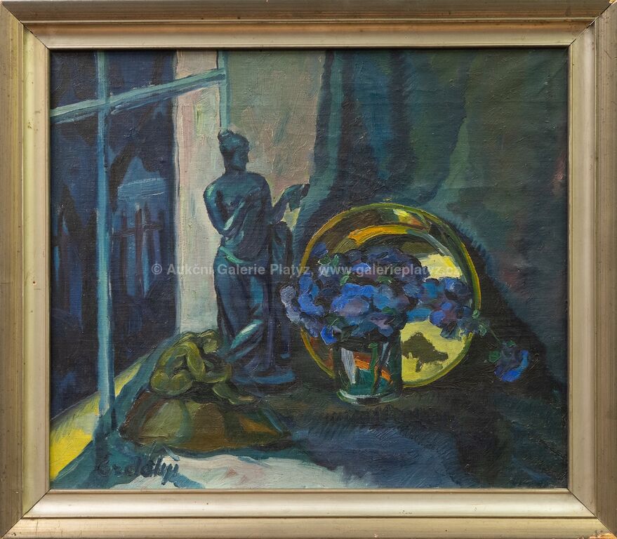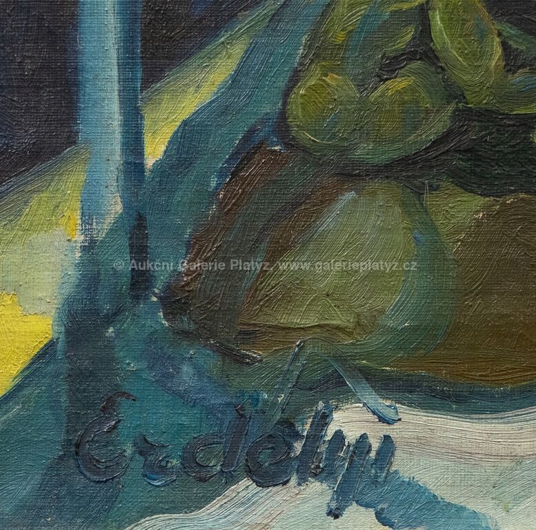 olej/plátno, rozměr 48 x 57 cm, značeno vlevo dole, rámováno, poškozený rám, drobné oděrky v malbě, přiloženo Vyjádření k dílu vypracované sběratelem Ing. Mariánem Hodošem