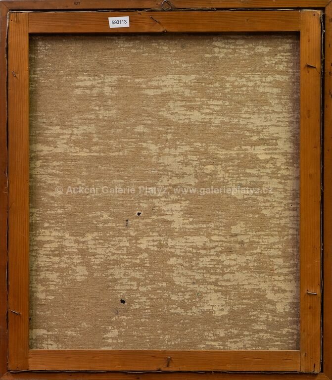 olej/plátno, rozměr 62 x 54 cm, značeno vpravo nahoře, rámováno, oděrky na rámu, přiloženo Vyjádření k dílu vypracované sběratelem Ing. Mariánem Hodošem