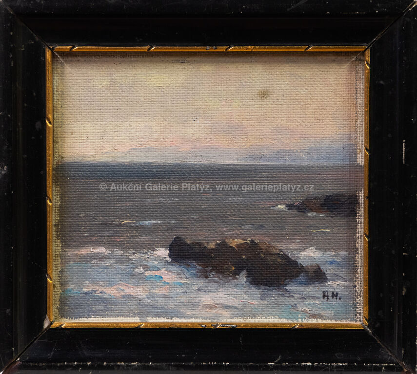 olej/plátno fixované na kartonu, rozměr 12 x 13,5 cm, značeno vpravo dole, zaskleno, rámováno, datum a věnování na zadní straně