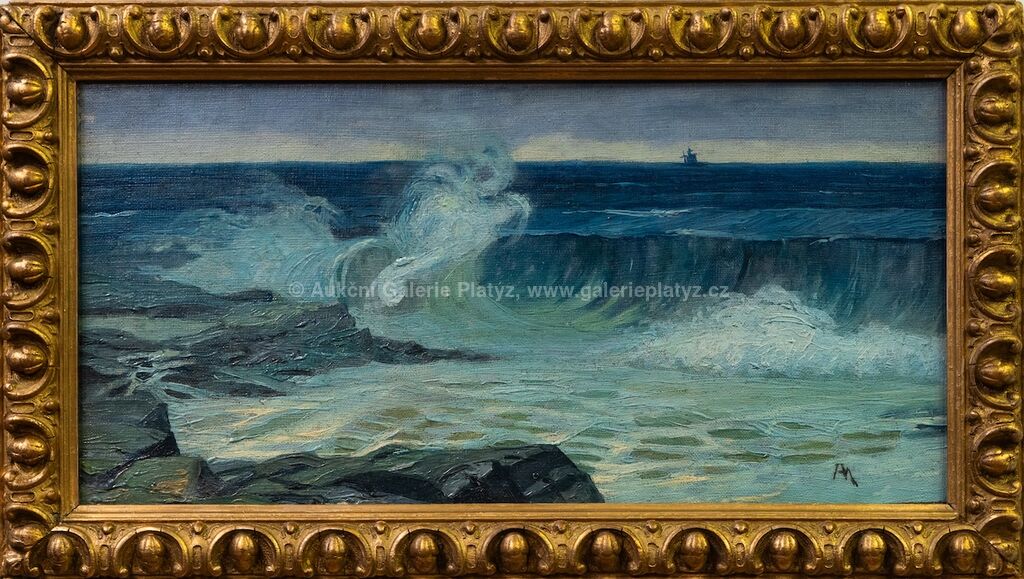 olej/plátno, rozměr 21 x 42,5 cm, značeno vpravo dole, rámováno, poškozený rám