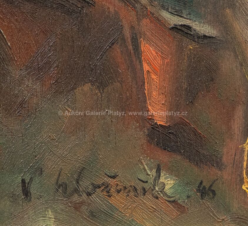 olej/překližka, rozměr 41,5 x 42,5 cm, značeno a datováno vlevo dole, rámováno, oděrky na rámu, pravost konzultována a potvrzena Ing. Mariánem Hodošem