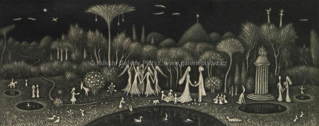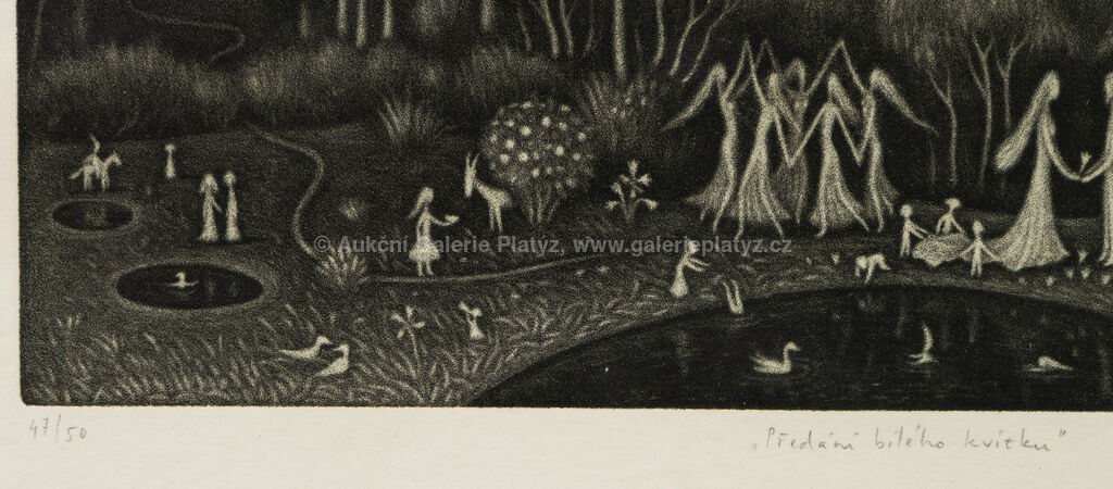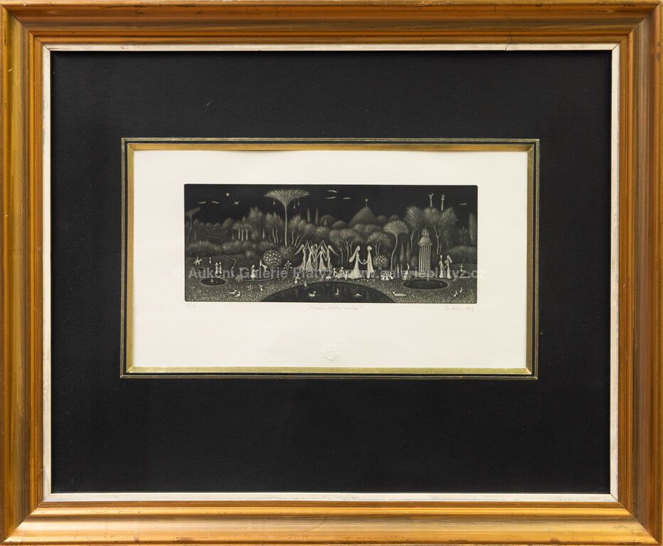 mezzotinta/papír, rozměr ve výřezu 19,5 x 35,5 cm, značeno, datováno, číslováno a popsáno ve spodní části, paspartováno, zaskleno, rámováno