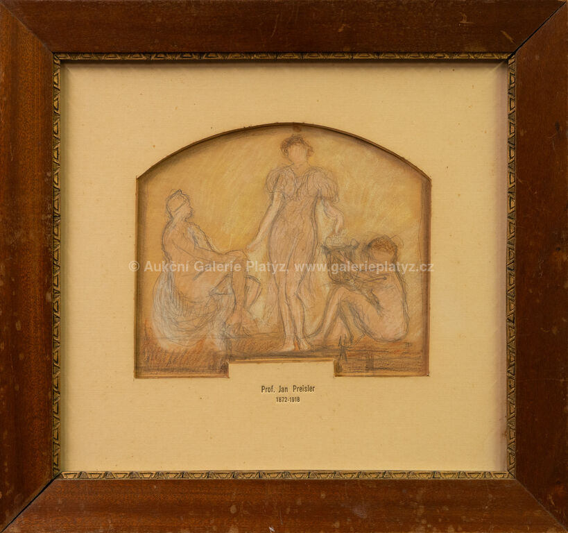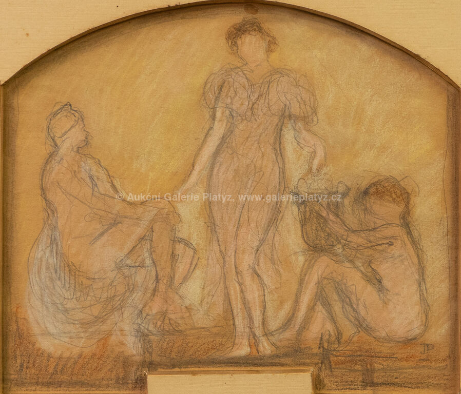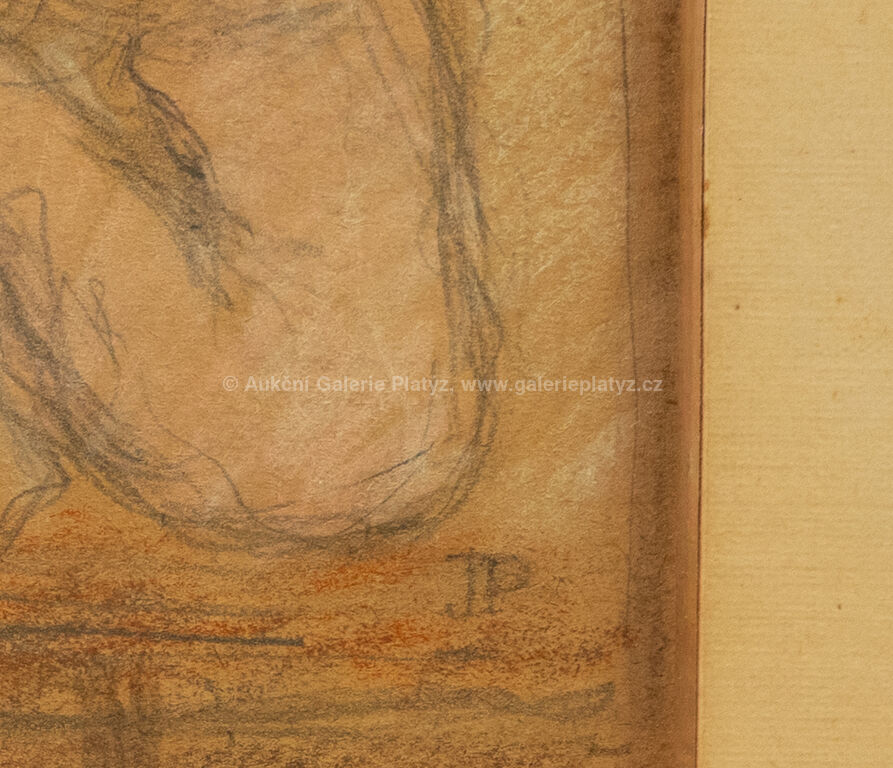 kombinovaná technika, tužka/pastel/papír, rozměr ve výřezu 16 x 19 cm, značeno vpravo dole, paspartováno, zaskleno, rámováno