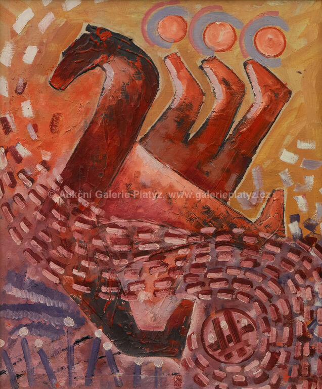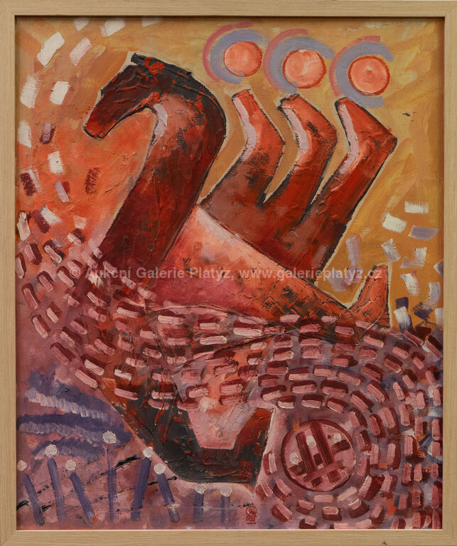 kombinovaná technika/sololit, rozměr 60 x 50 cm, značeno a datováno ve spodní části, rámováno