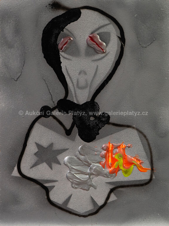 kombinovaná technika/akryl/sprej/dřevovláknitá deska, rozměr 40 x 30 cm, značeno, datováno a popsáno na zadní straně
