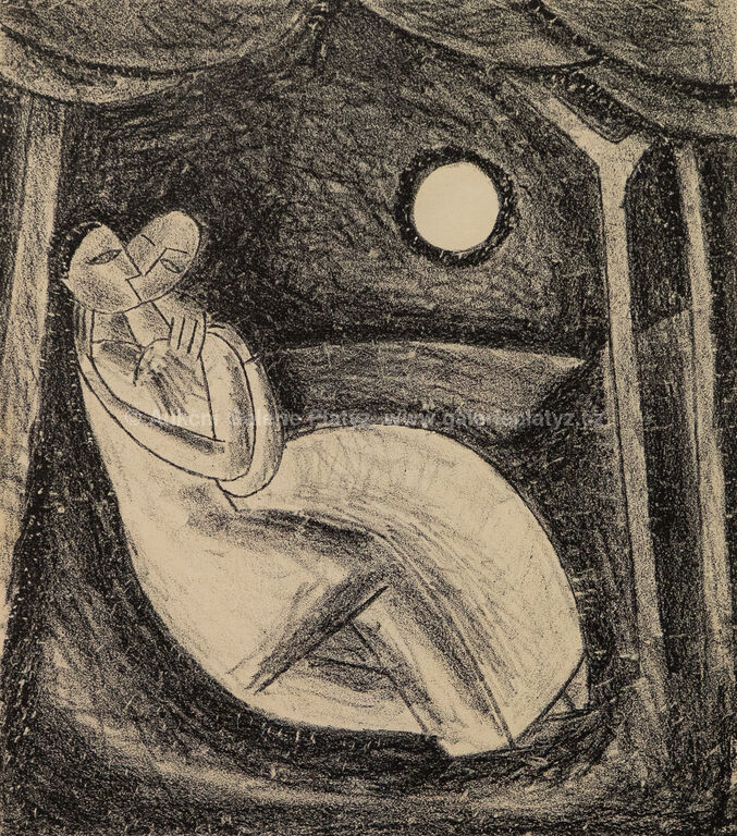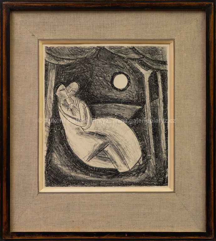 litografie/papír, rozměr ve výřezu 25,5 x 22,5 cm, neznačeno, paspartováno, zaskleno, rámováno