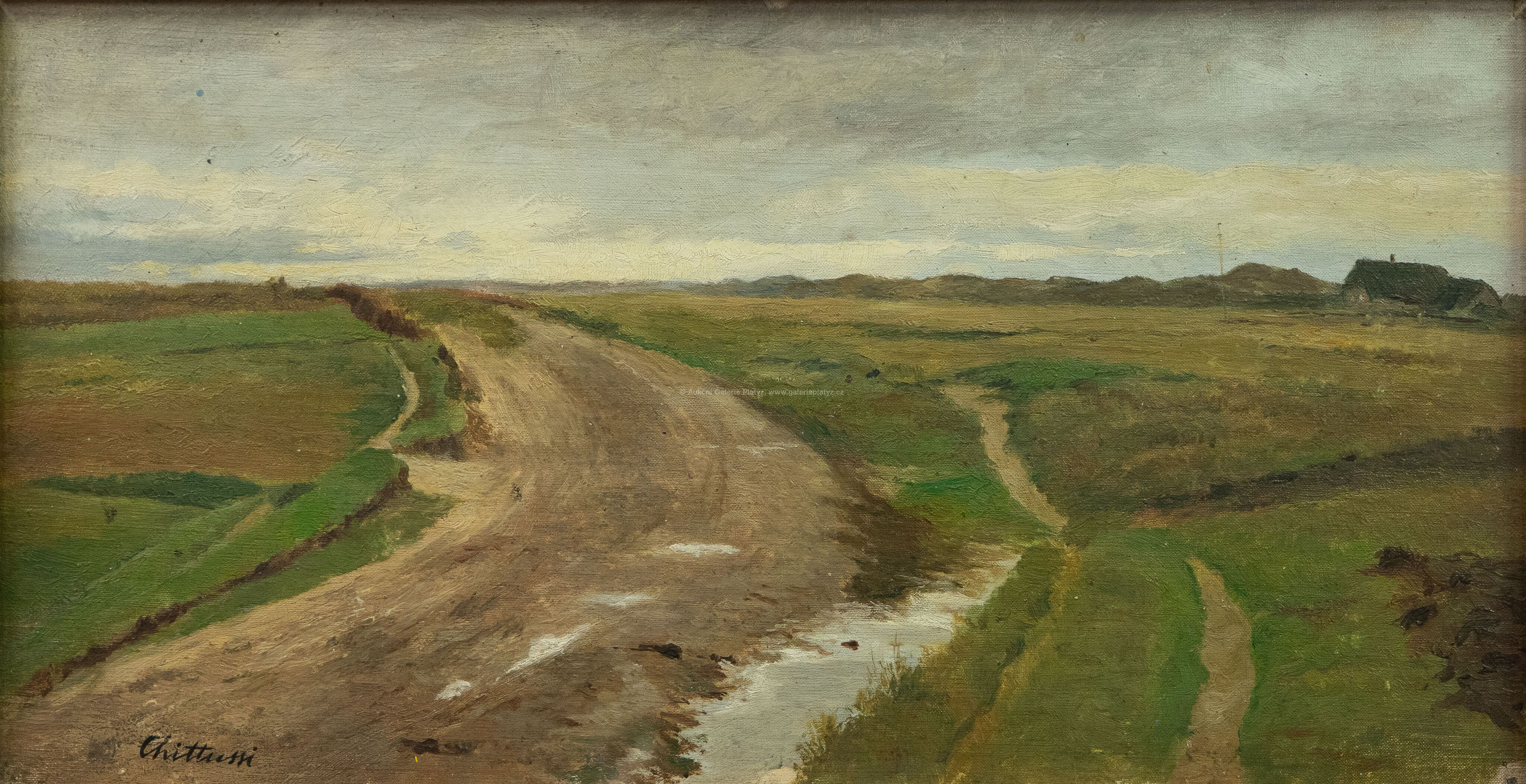 olej/plátno fixované na kartonu, rozměr 23 x 42 cm, značeno vlevo dole, zaskleno, rámováno, konzultováno a pravost potvrzena, bude přiložen Odborný posudek vyhotovený PhDr. Mgr. Michaelem Zachařem