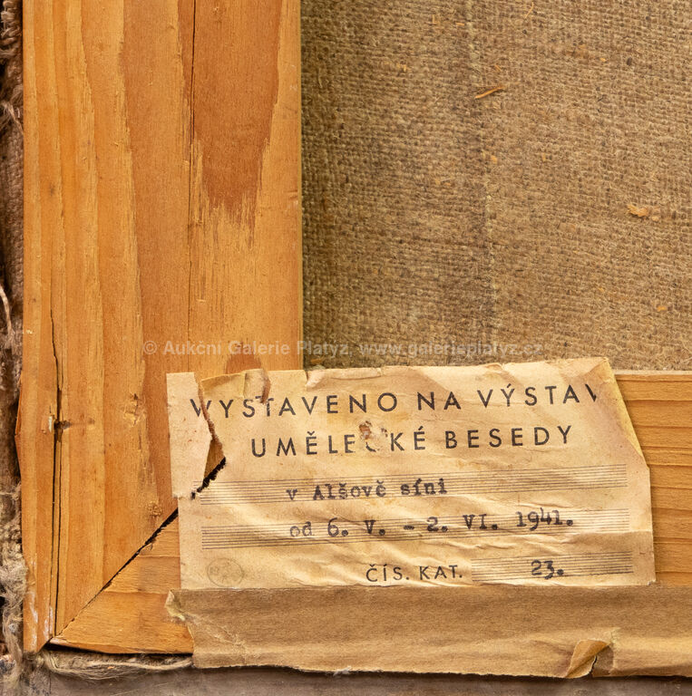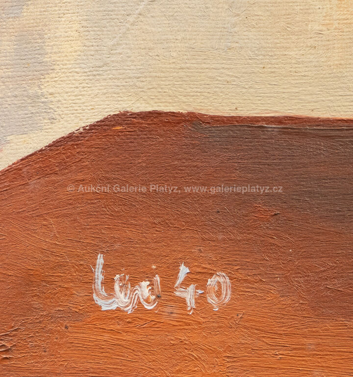 olej/plátno, rozměr 65 x 50 cm, značeno a datováno vlevo dole, rámováno, na zadní straně štítek Umělecké besedy z Alšovy síně
