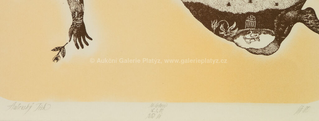 litografie/papír, rozměr listu 27,5 x 30 cm, značeno, datováno a popsáno ve spodní části, volně loženo (autorský tisk)
