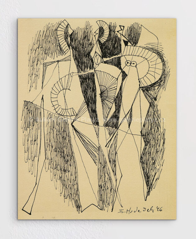 tuš/papír, rozměr listu 24 x 19 cm, značeno a datováno vpravo dole, volně loženo