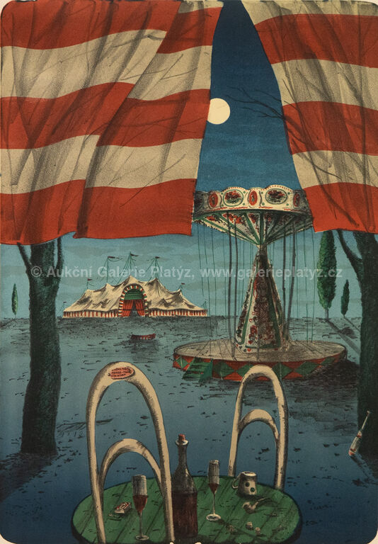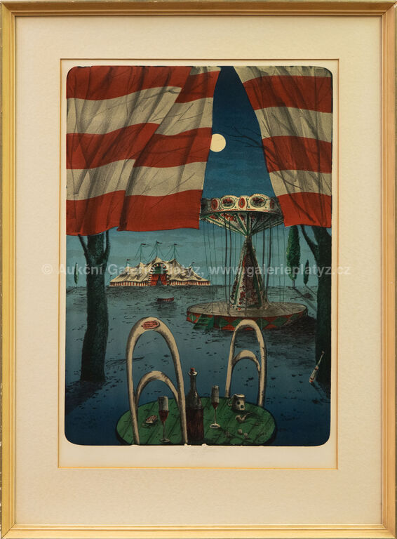 litografie/papír, rozměr ve výřezu 57,5 x 39 cm, značeno, datováno a číslováno ve spodní části, paspartováno, zaskleno, rámováno, poškozený rám