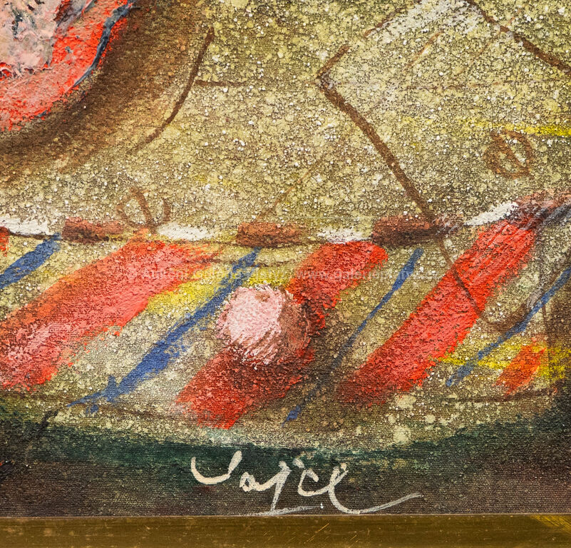 kombinovaná technika/překližka, rozměr 50 x 69 cm, značeno ve spodní části, zaskleno, rámováno