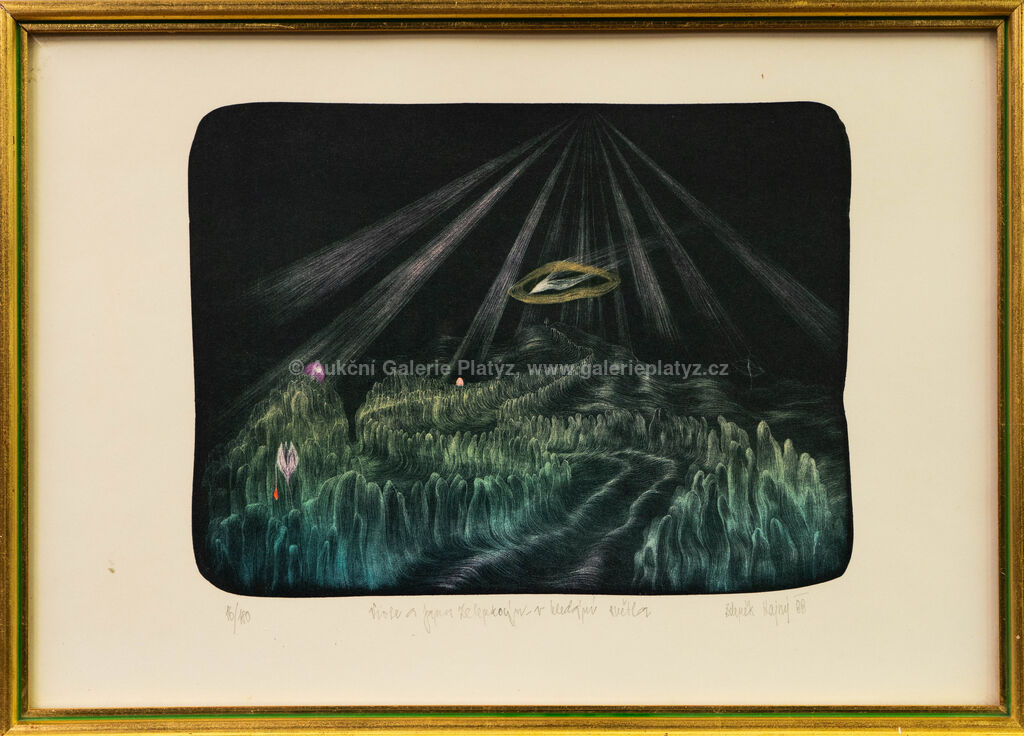 litografie/papír, rozměr 23 x 32 cm, značeno, datováno, číslováno a popsáno ve spodní části, zaskleno, rámováno, oděrky na rámu