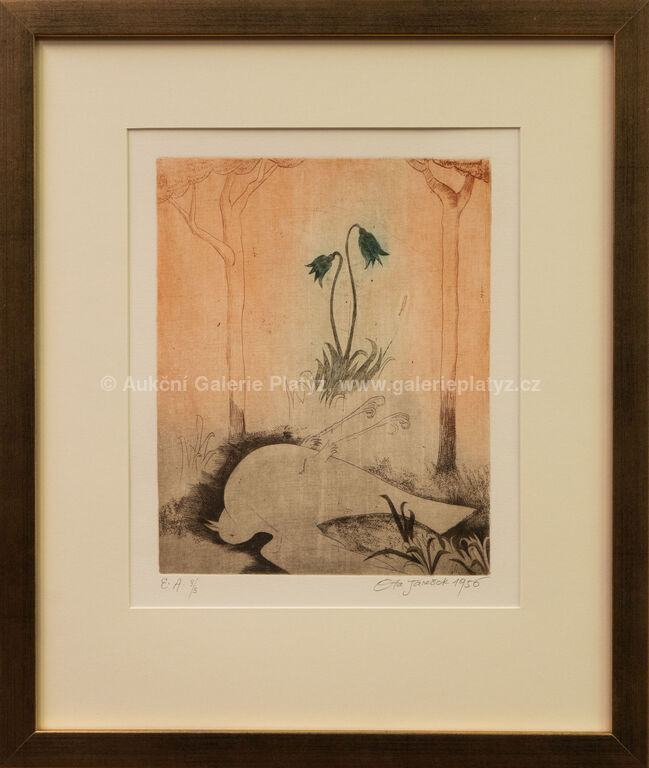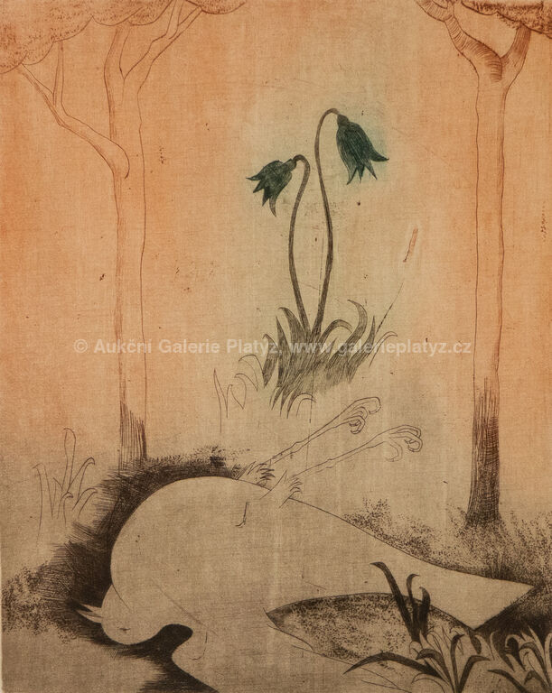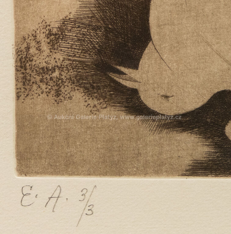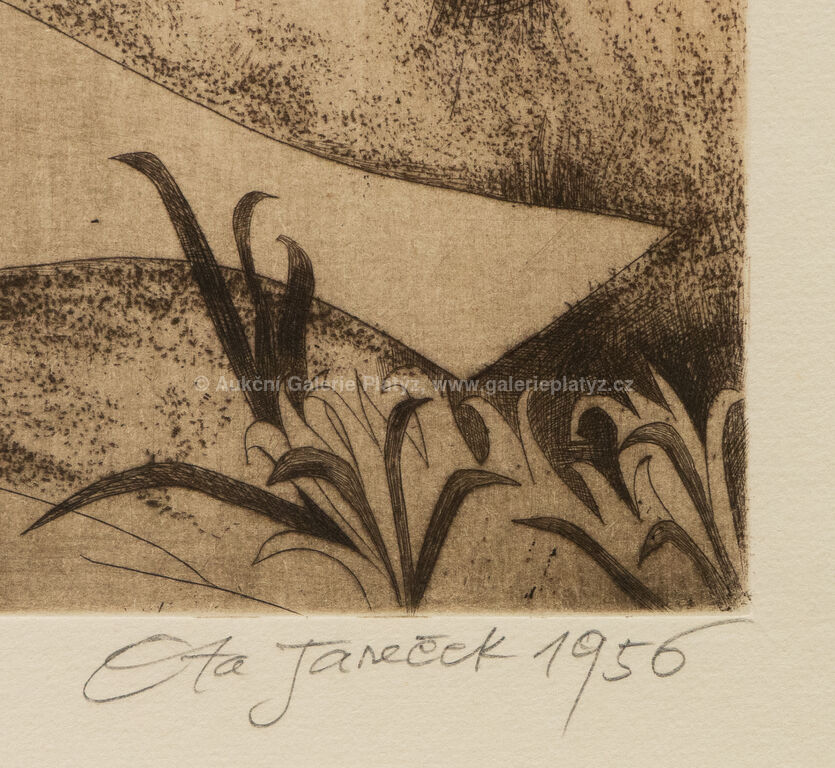 suchá jehla/papír, rozměr ve výřezu 32,5 x 26,5 cm, značeno, datováno a popsáno ve spodní části, paspartováno, zaskleno, rámováno