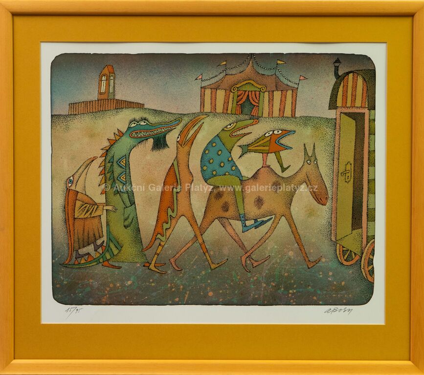 litografie/papír, rozměr ve výřezu 42 x 52 cm, značeno a číslováno ve spodní části, paspartováno, zaskleno, rámováno